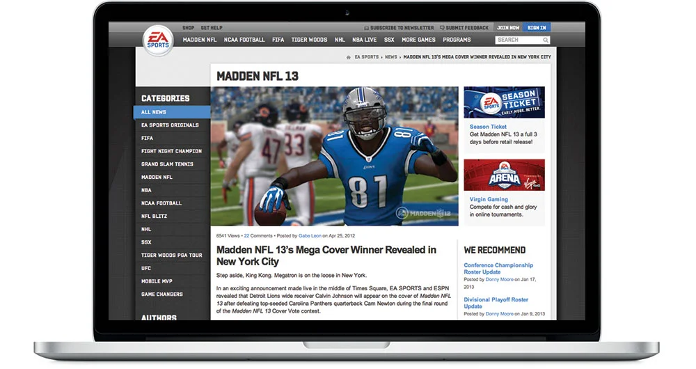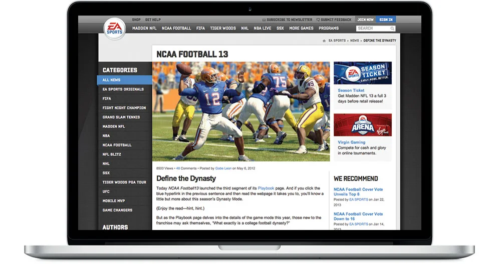 Produced compelling, in-depth communication pieces to help educate the fan base, media and external partners on the history and future of some of the brand's award-winning franchises. Editorial for EA SPORTS.com and EA.com audiences included live event coverage, behind-the-scenes exclusives, feature articles, talent interviews, and blogs.